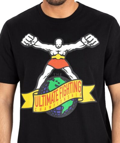 Originally featured on the Octagon canvas at UFC 1 in 1993, Ulti-Man is back! Celebrate a part of UFC history with the UFC | Venum Ulti-Man T-Shirt. On this black crewneck graphic T-shirt, the iconic Ulti-Man logo in grey takes center stage, while a branded patch sits at the hip. The Venum logo features at the back neck, also in grey. Available in multiple colors.
