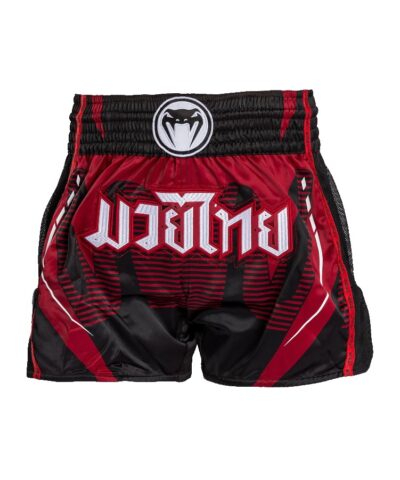 Fight or flight, the Venum Adrenaline Collection is inspired by the heart-pounding rush of performance. The Venum Adrenaline Muay Thai Shorts make a bold statement, with a red-black design combining the Venum logo and name. These Thai boxing shorts have been made with a light and flexible polyester, to leave you free to move. Side slits allow for greater range of motion in the ring. Meanwhile, a wide traditional belt offers a secure supportive fit around the waist, so you can focus on your performance.